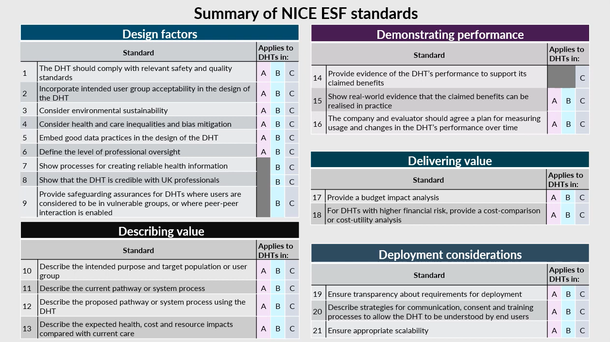 Figure 2 – Overview of NICE evidence standards vs. the pertinent ESF Digital Health Technology risk level ( Source)